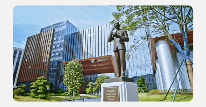 乐鱼(中国)leyu园区内伫立着尼古拉·特斯拉雕像